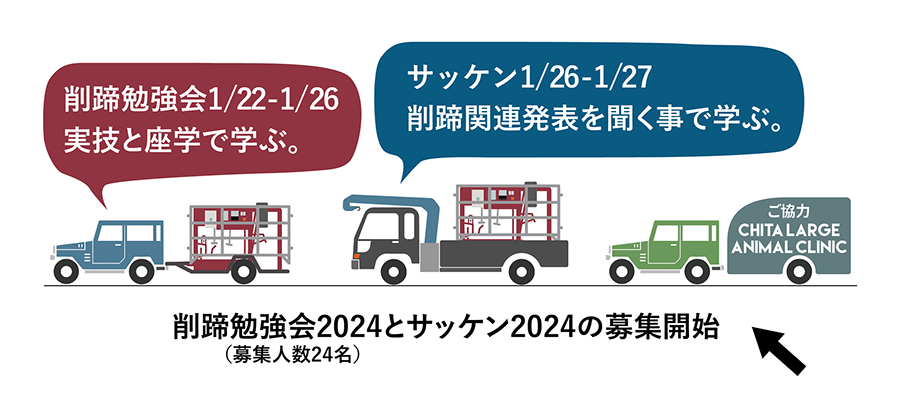削蹄師の方、農家の方、獣医の方、未経験の方、女性の方、どなたでも参加できる4泊5日で削蹄が学べる削蹄勉強会です。削勉強会最終日のお昼〜翌日夕方まで1泊2日で削蹄の研究発表会(サッケン)を開催しています。どなたでも参加できます。情報を共有して共に成長しましょう。
